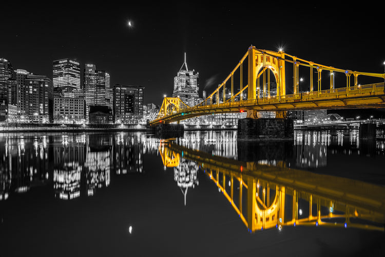 Photo of the Pittsburgh Skyline with Reflections - Black & Gold